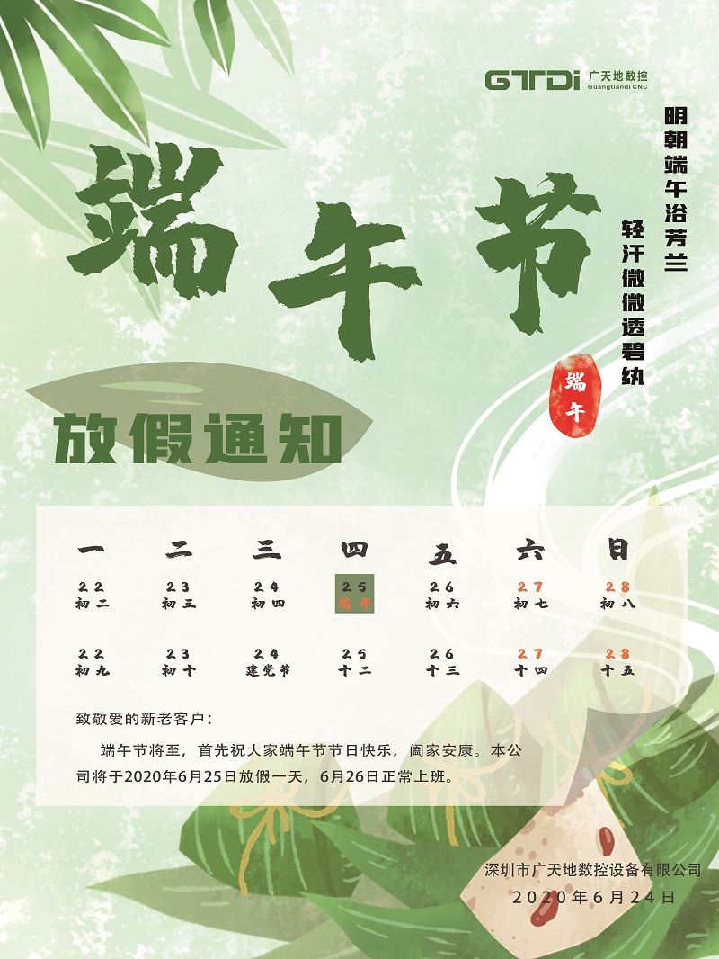 PA娱乐数控2020年端午节放假时间通知