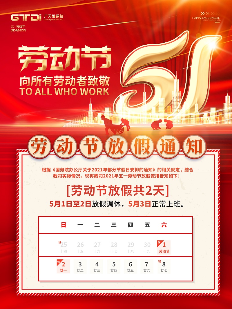 PA娱乐数控2021年五一劳动节放假通知