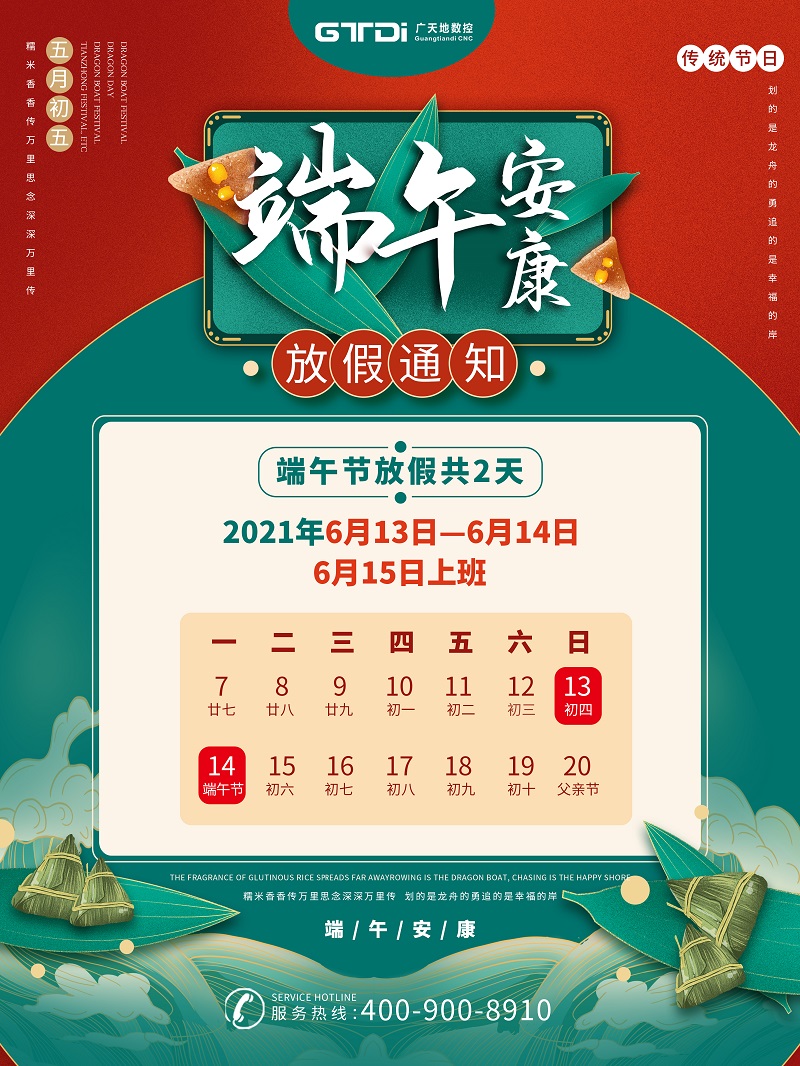 根据国务院办公厅《关于2021年部分节假日安排的通知》,并结合我司实际情况,PA娱乐数控2021年端午节放假安排如下: