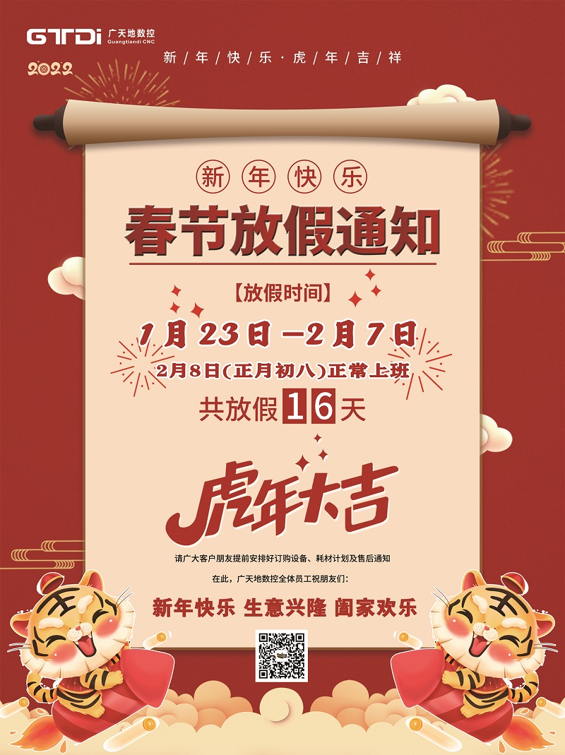 2022年春节将至,首先感谢您在2021年里的鼎力支持和愉快合作,PA娱乐数控全体同仁在此给您拜个早年。在新年的一年里,PA集团将更加努力,为您提供更优质的服务。按照国家春节放假规定结合我司的具体情况,春节放假时间安排如下: